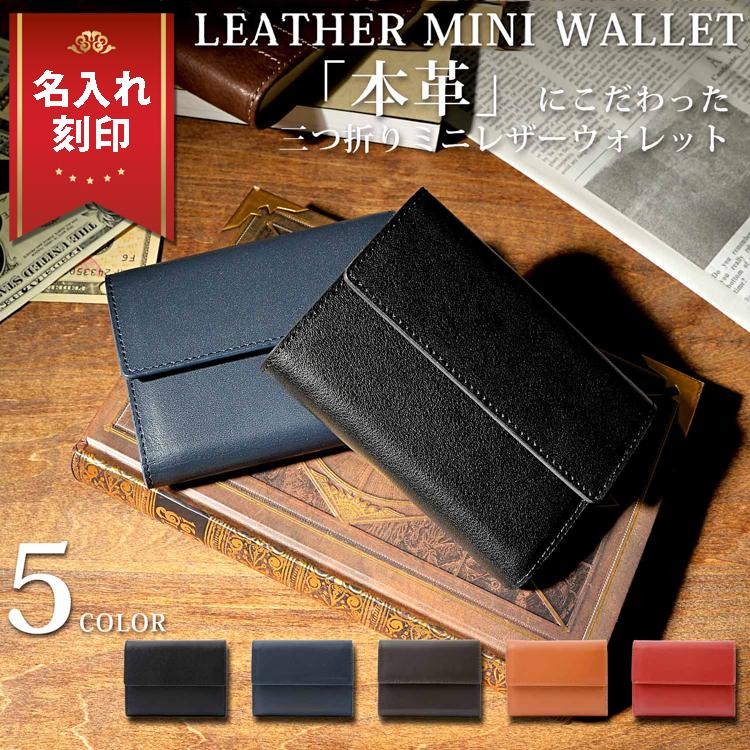 名入れ 本革 にこだわった三つ折り ミニレザーウォレット 三